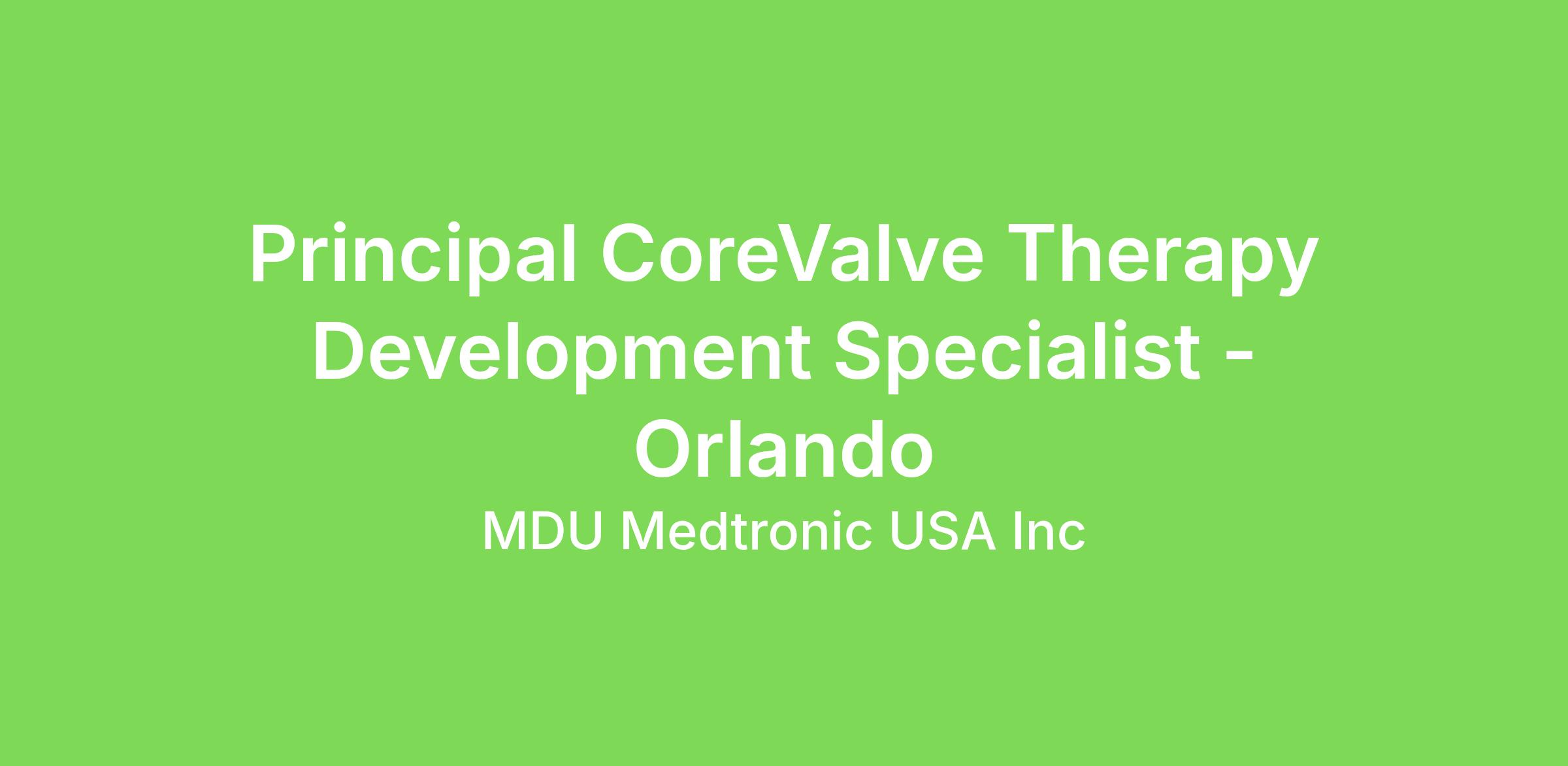 The CoreValve Principal Therapy Development Specialist (TDS) provides technical, clinical, educational and sales support to ensure safe adoption and growth of the Medtronic CoreValve System and future catheter-based therapy technologies. The CoreValve Therapy Development Specialist works closely with implanting teams and the Medtronic Catheter-Based Therapies (CBT) and CVG field organizations to drive procedural and practice success.