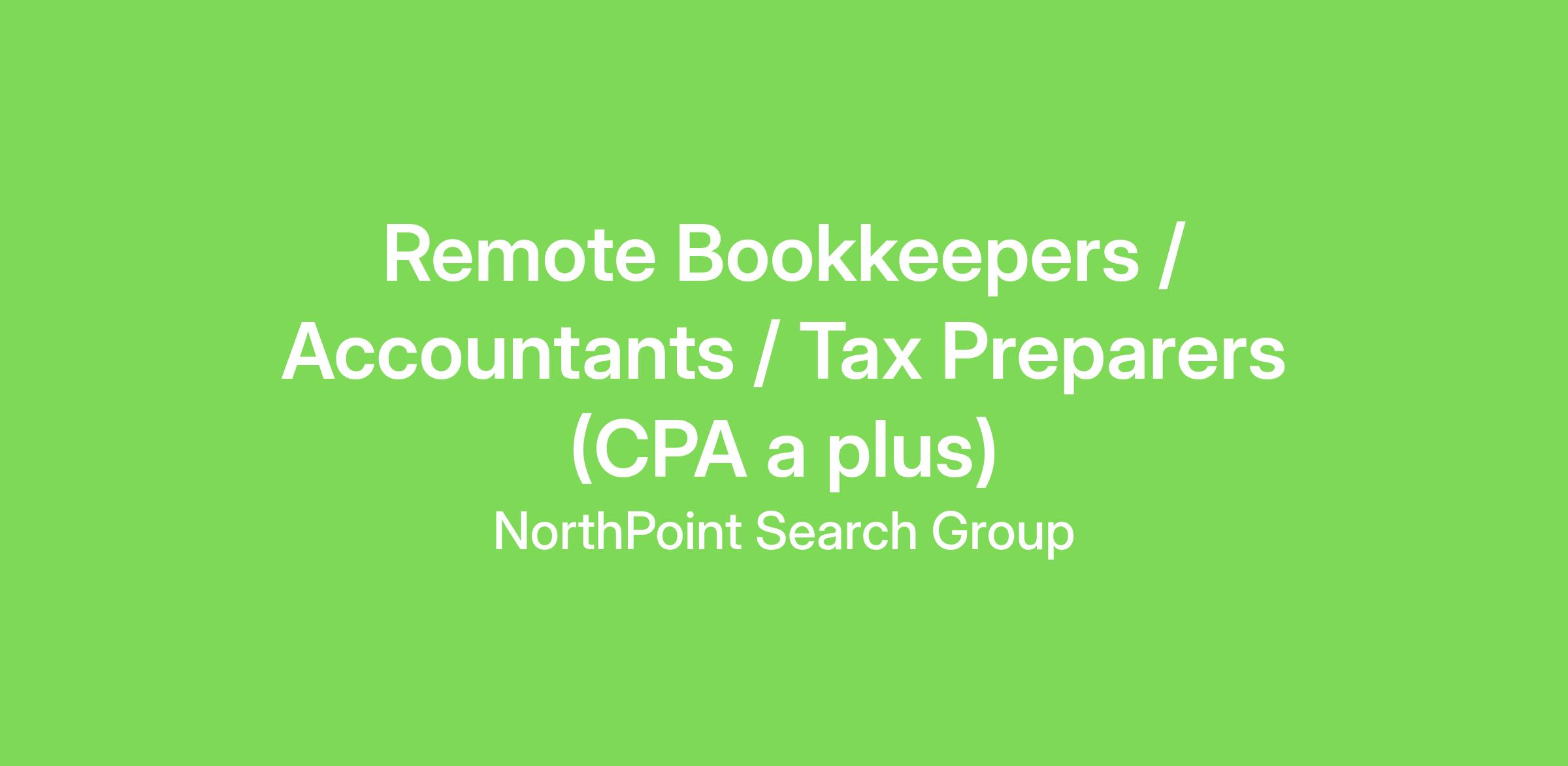 Remote Bookkeepers / Accountants / Tax Preparers (CPA a plus)