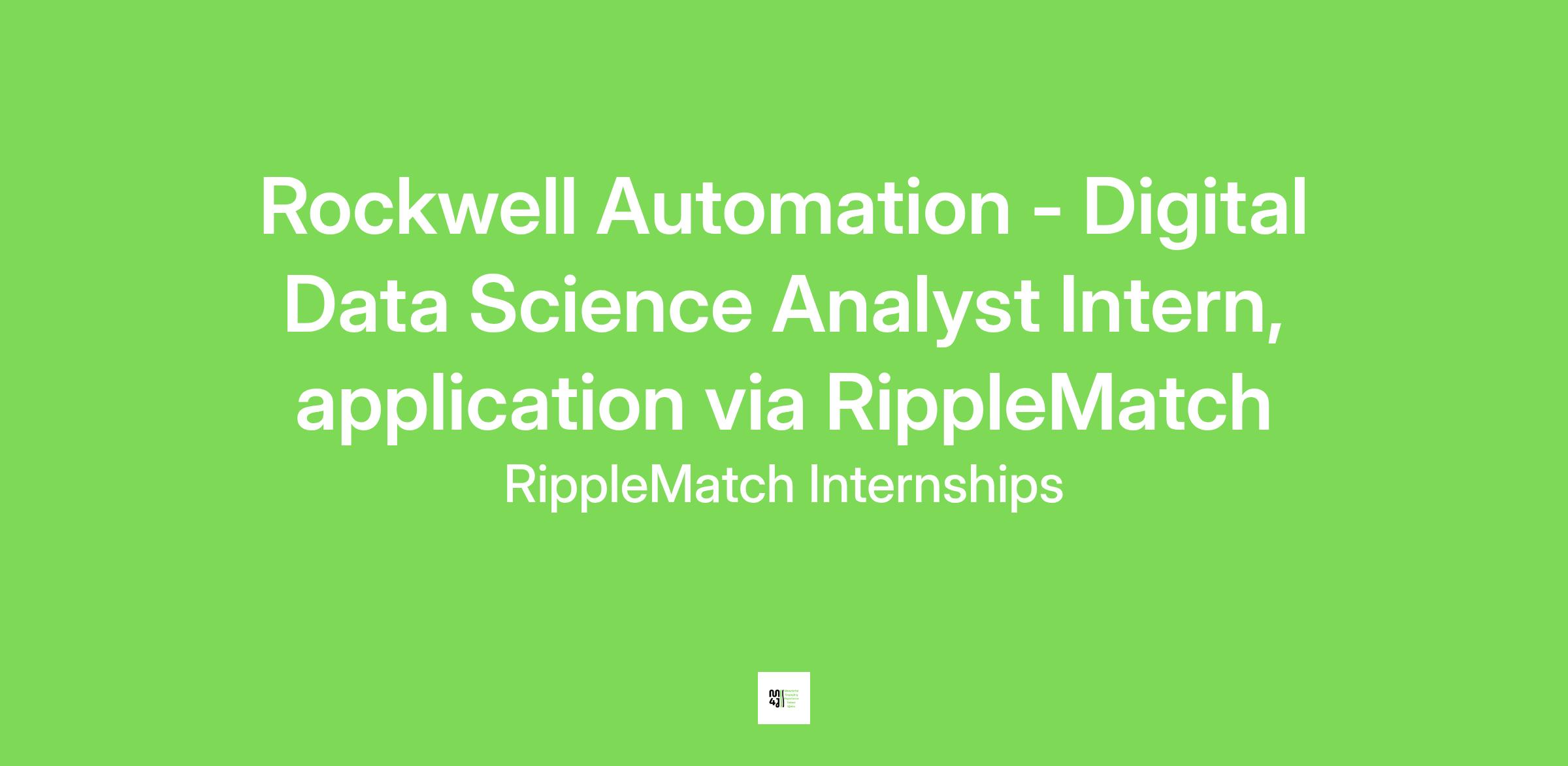 This role is with Rockwell Automation. Rockwell Automation uses RippleMatch to find top talent.