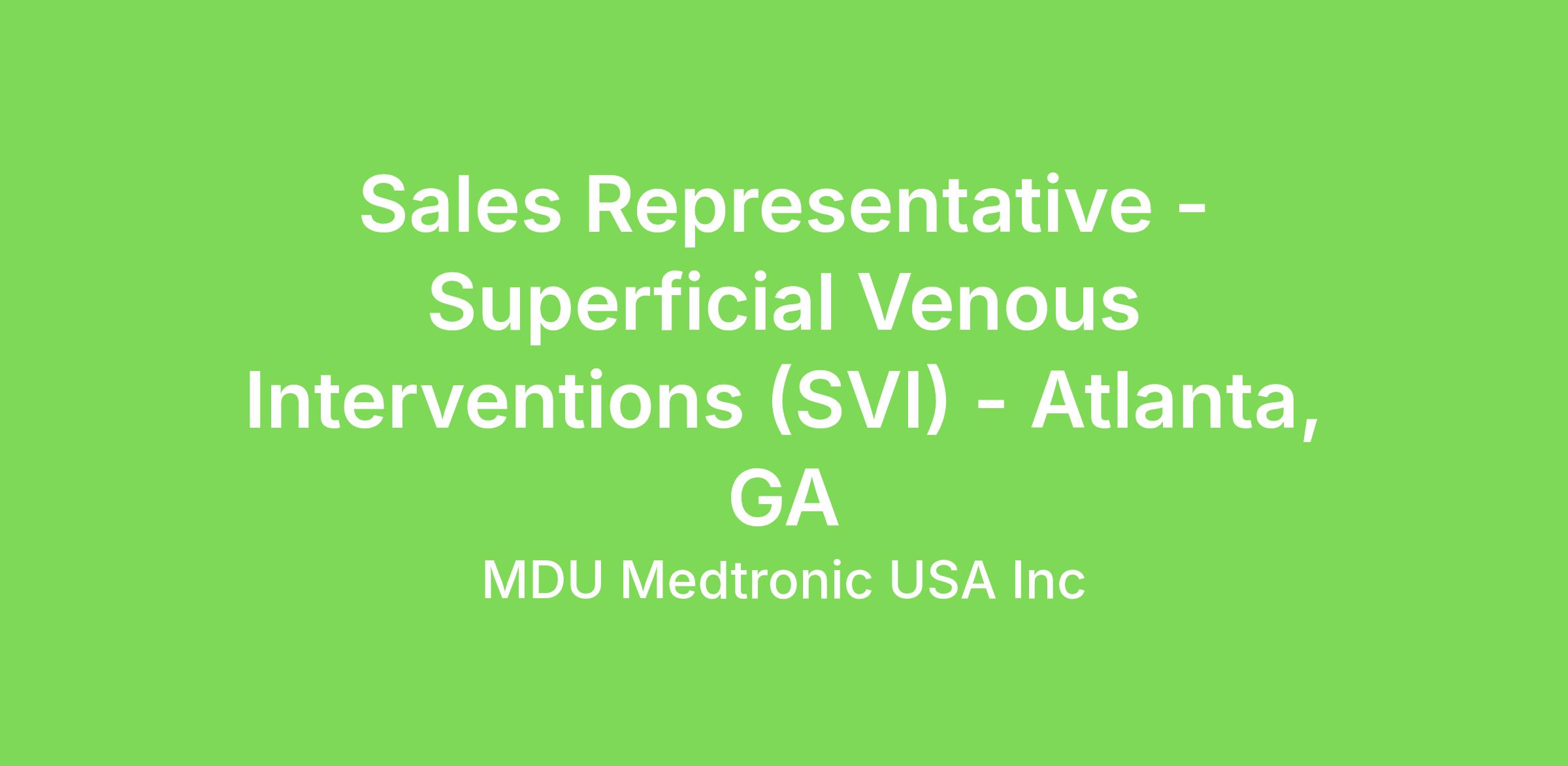 To grow sales and market share for an assigned territory by promoting, selling and servicing Superficial Venous Intervention (SVI) products. Build business by aggressively developing new accounts and driving therapy adoption of VenaSeal and Closure System product portfolio across the continuum of care for Venous Disease. Practice good, ethical territory management in terms of organization, planning, administration and expense planning and control. Train medical staff on products and procedures. Meet expectations as defined by Sales Management.