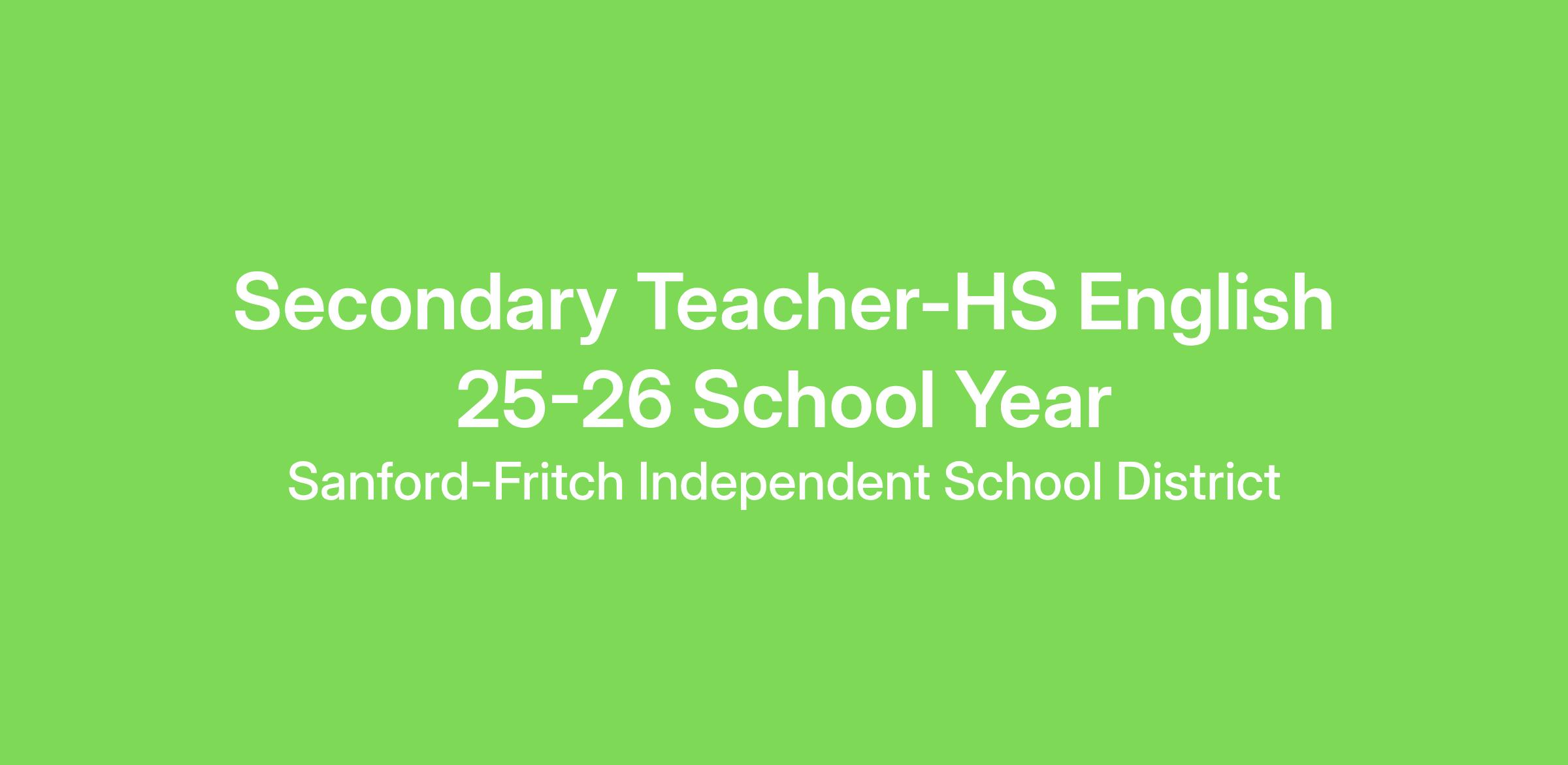 Secondary Teacher-HS English 25-26 School Year