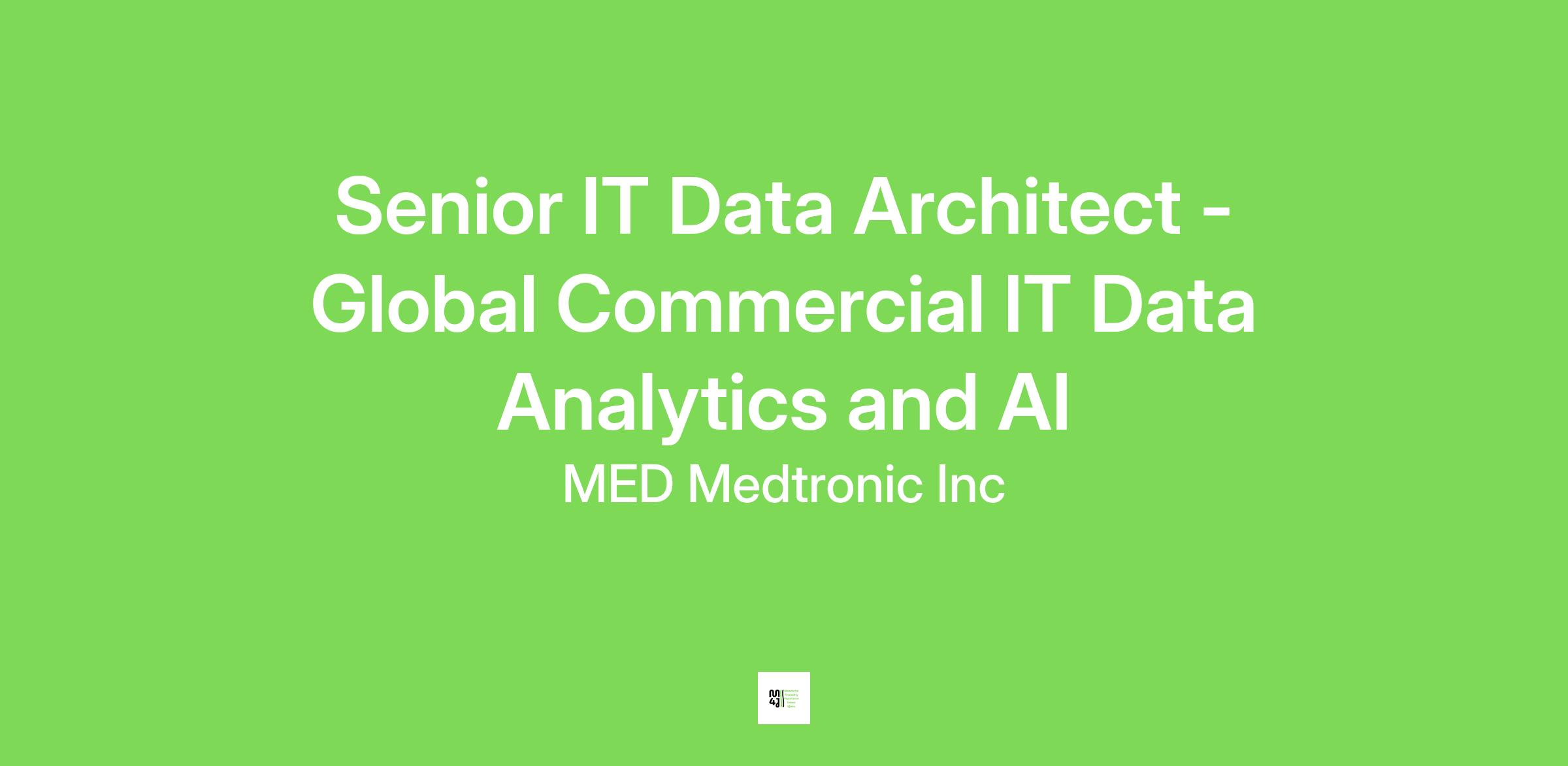 The Senior IT Data Architect role is responsible for delivering Data Products aligned with business capability needs and enterprise standards. This role works with other Data Architects, Business Solution Architects, Business Analysts, Data Engineers, Technical Architects and external service providers, to ensure data and information models and technologies align with stated architecture strategies and Medtronic’s standards and delivery capabilities. In a delivery capacity, this role will work with Business Analysts to review and complete business capability needs, definitions, and requirements, data analysis, data modeling, technical specification writing, and working with development organizations to ensure designs are delivered.