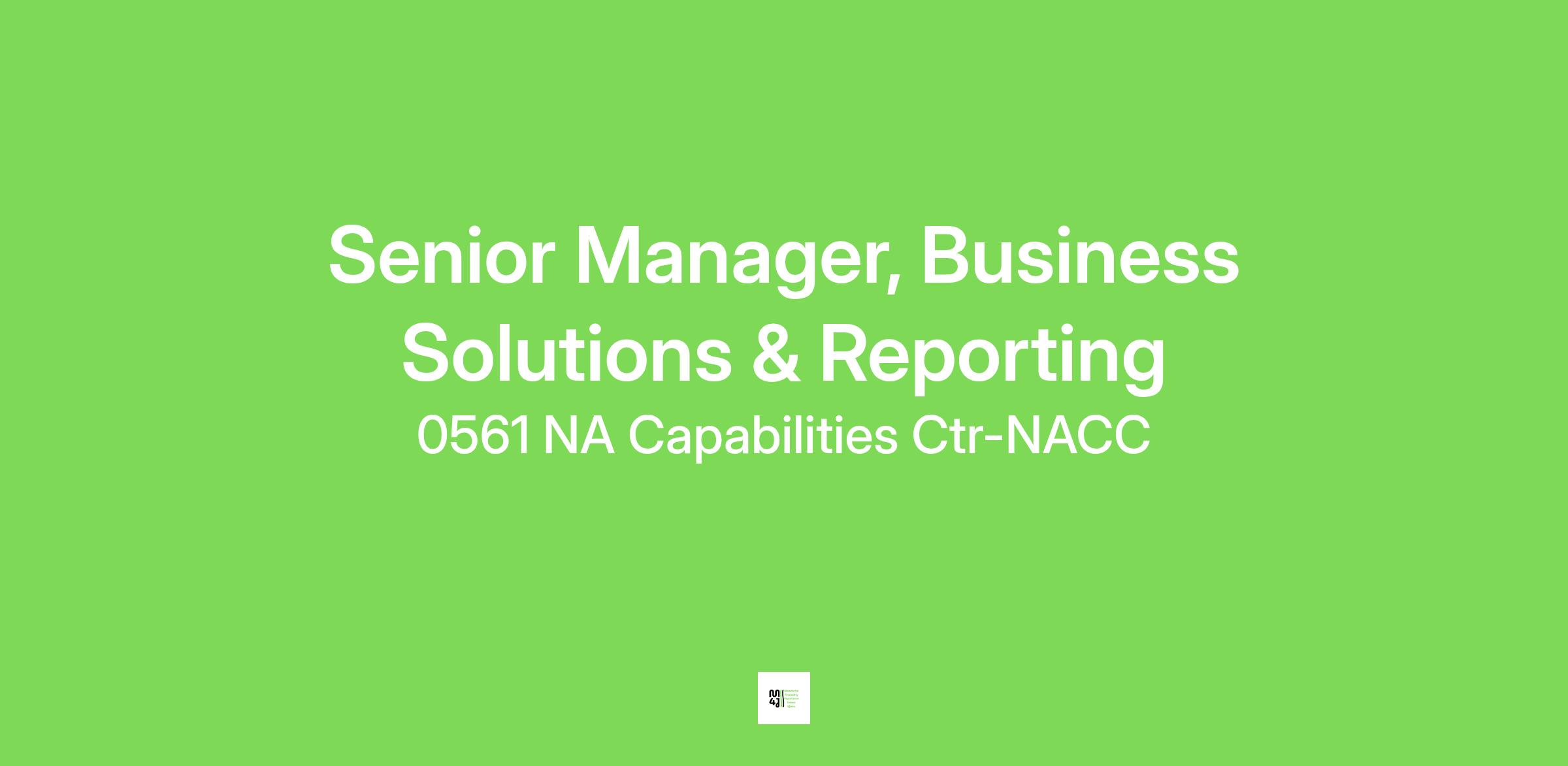 Senior Manager, Business Solutions & Reporting