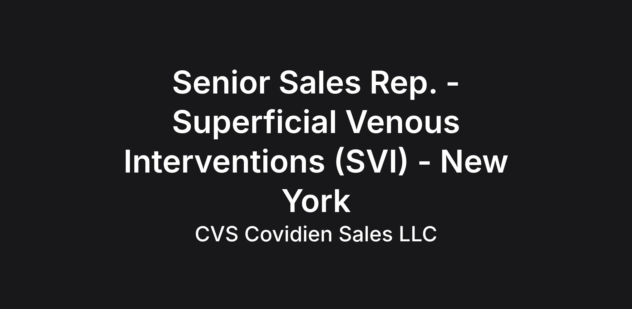 Senior Sales Rep. - Superficial Venous Interventions (SVI) - New York