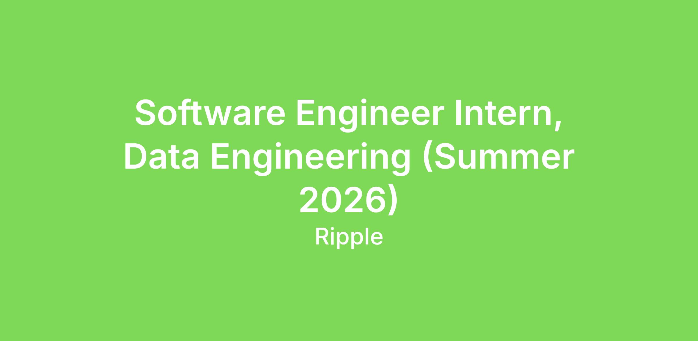 As a Software Engineer Intern, you will be one of the core builders within Ripple’s central Data Engineering. This team implements the data ingestion and transformation for analytics, machine learning and powering various business functions at Ripple. You are curious about the bottlenecks and failure modes of a system and look for opportunities to continually improve cost/performance characteristics. You are hands-on in driving key technical decisions, ensuring the right tradeoffs are made to deliver high-quality results and deliver high, measurable customer value. You work well across functions and teams, including data science, product, application engineering, compliance, finance and others. Your passion for good engineering is complemented by strong instincts to deliver value.