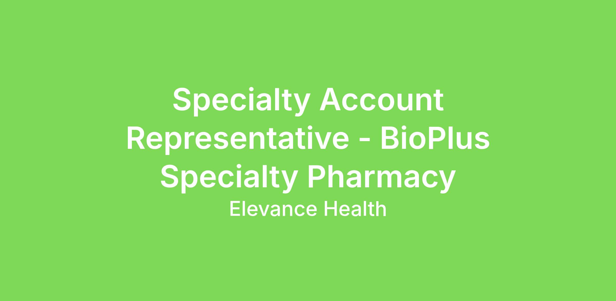 Specialty Account Representative - BioPlus Specialty Pharmacy