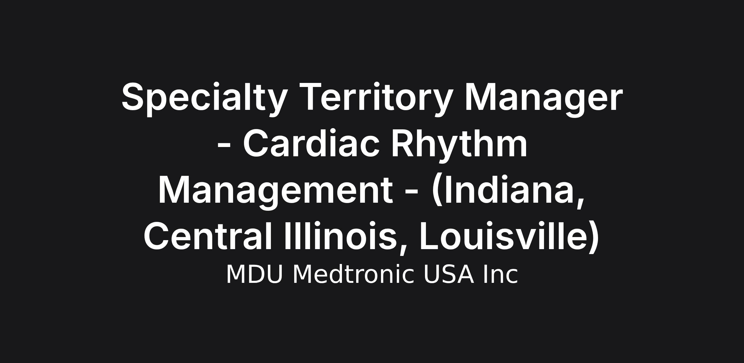 Specialty Territory Manager - Cardiac Rhythm Management - (Indiana, Central Illinois, Louisville)