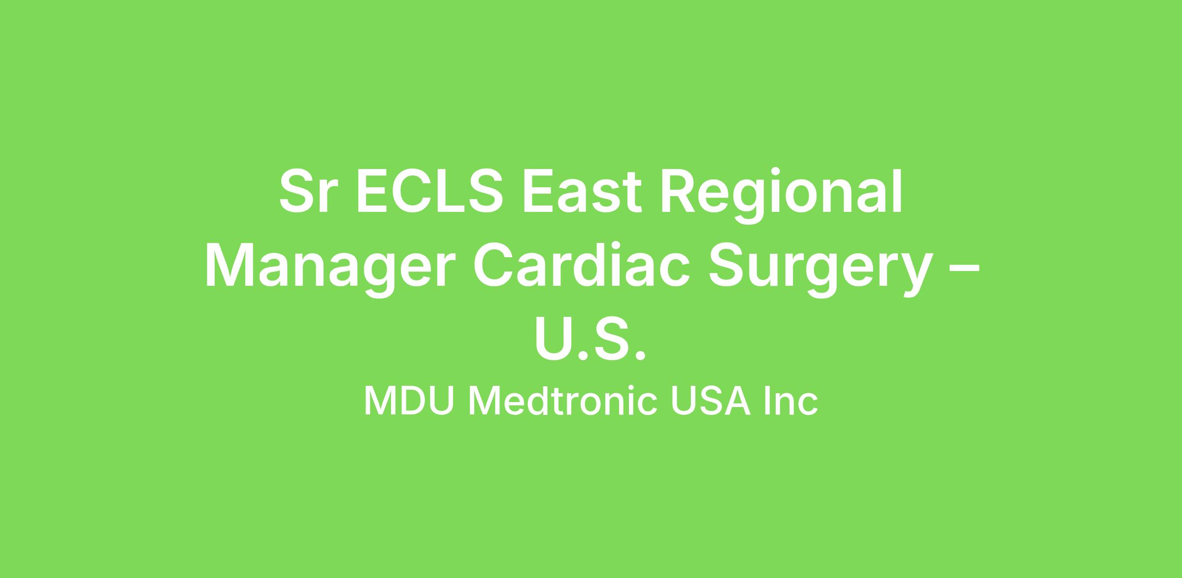 Sr ECLS East Regional Manager Cardiac Surgery – U.S.