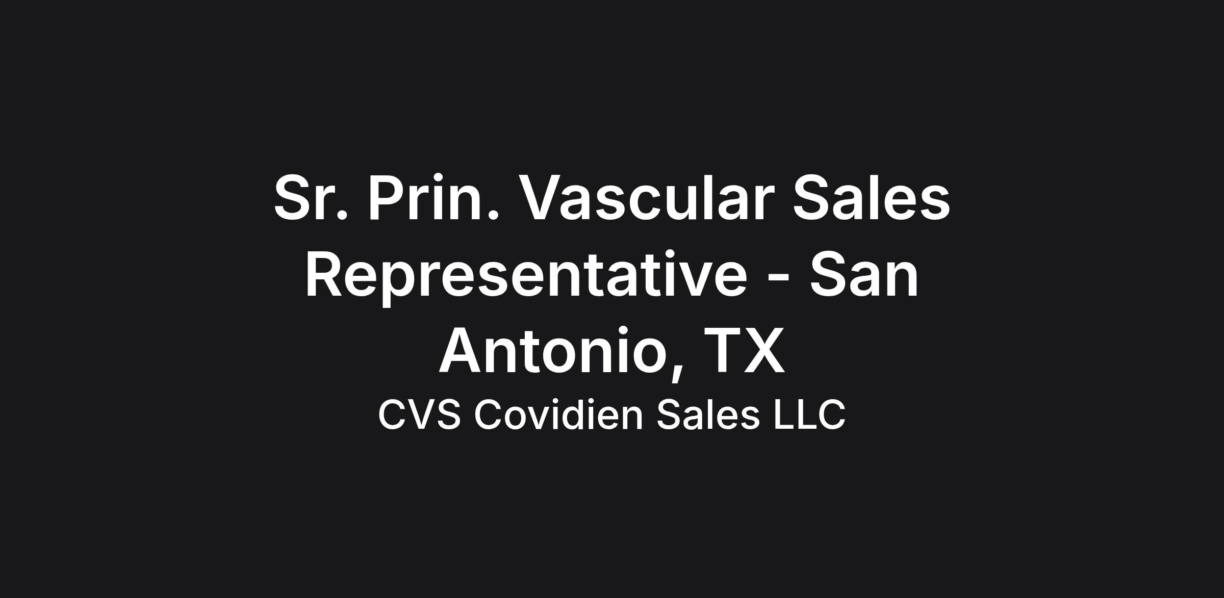 Sr. Prin. Vascular Sales Representative - San Antonio, TX