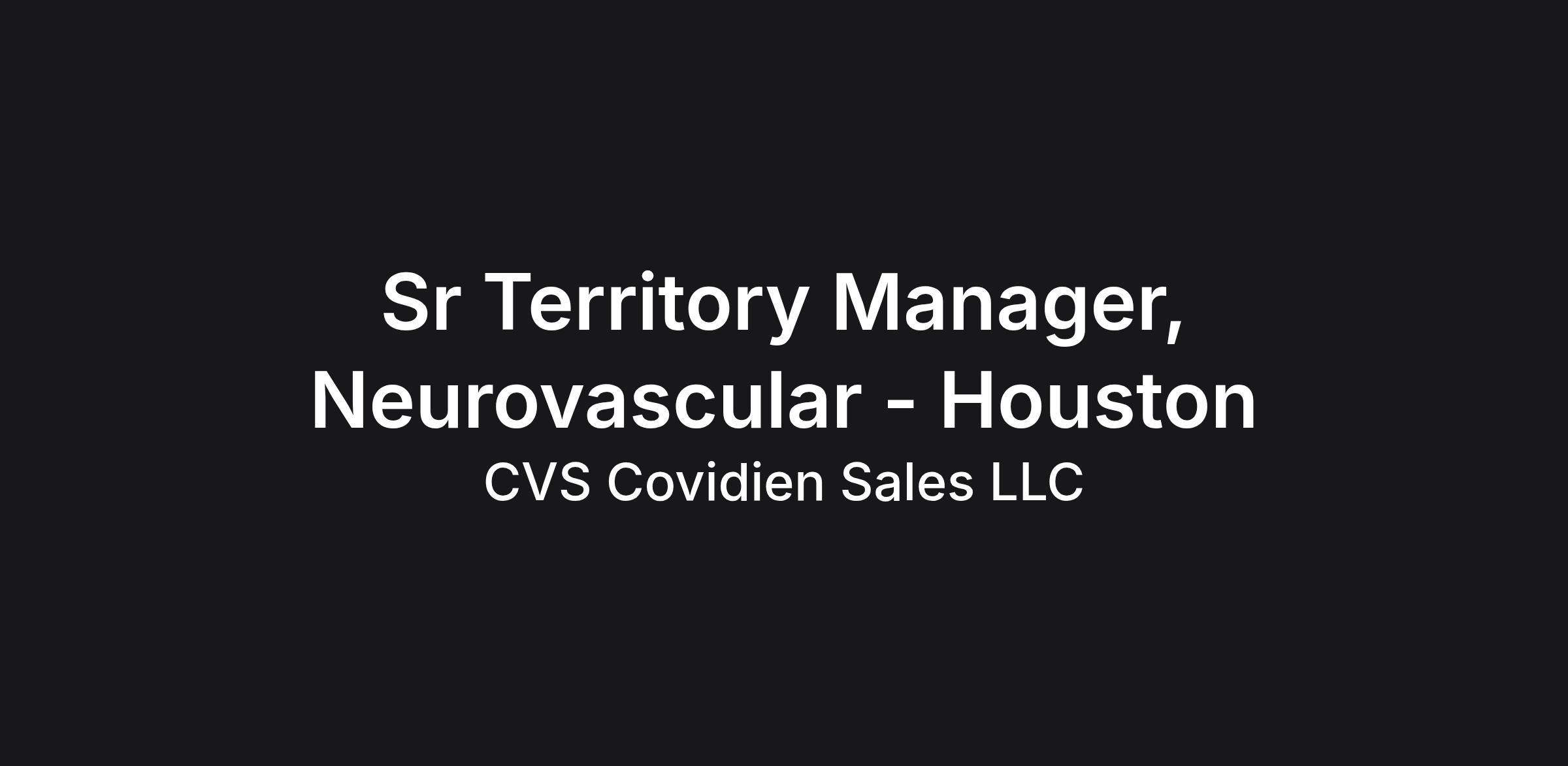 Sr Territory Manager, Neurovascular - Greater Houston Area