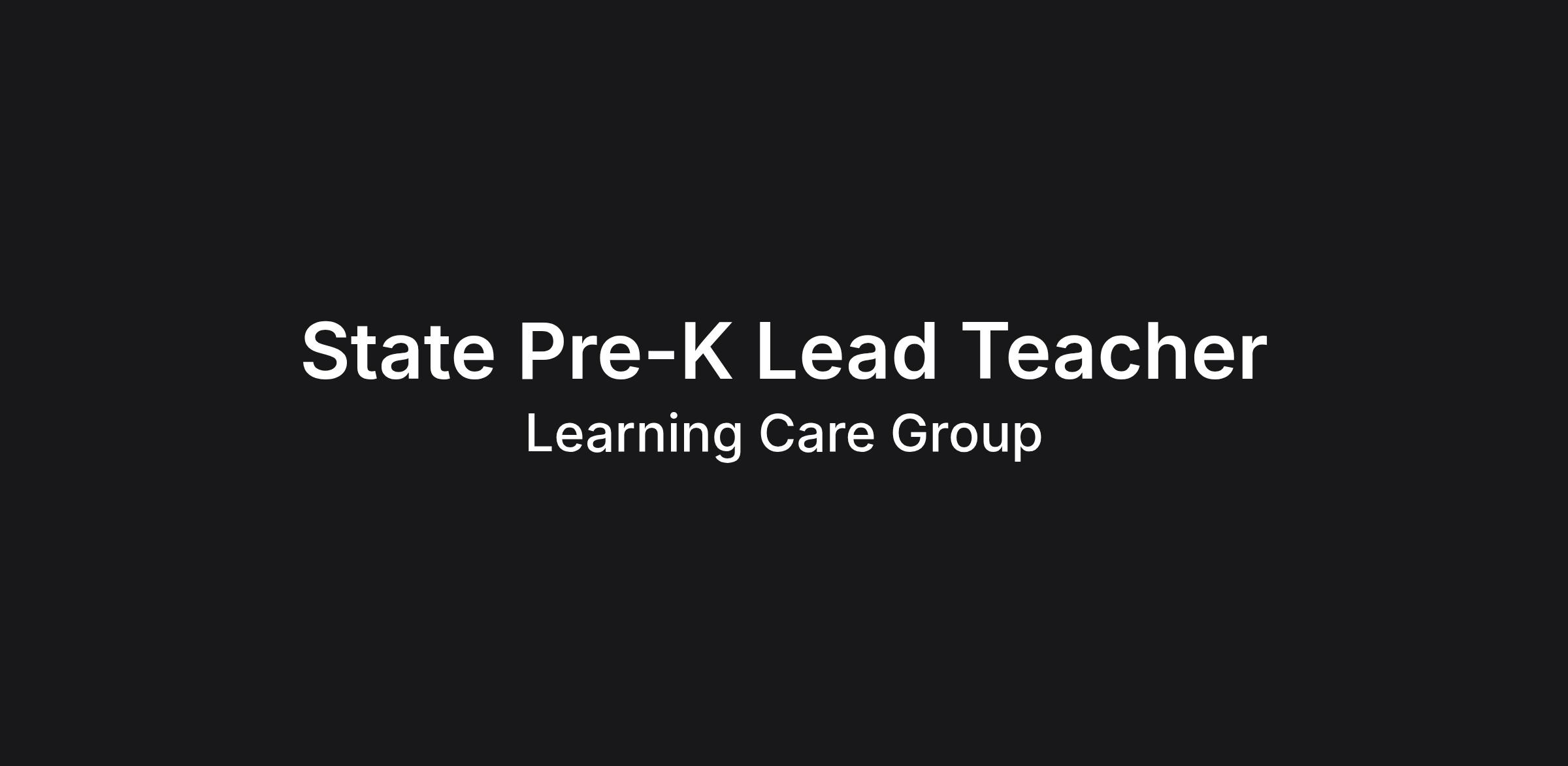 DescriptionThe State Pre-K Lead Teacher is responsible for all aspects of planning, assessing and instructing based on the needs of each child, and the requirements of the program. We want change makers who never stop being curious, inventive, and open-hearted to prepare children for Kindergarten and beyond.