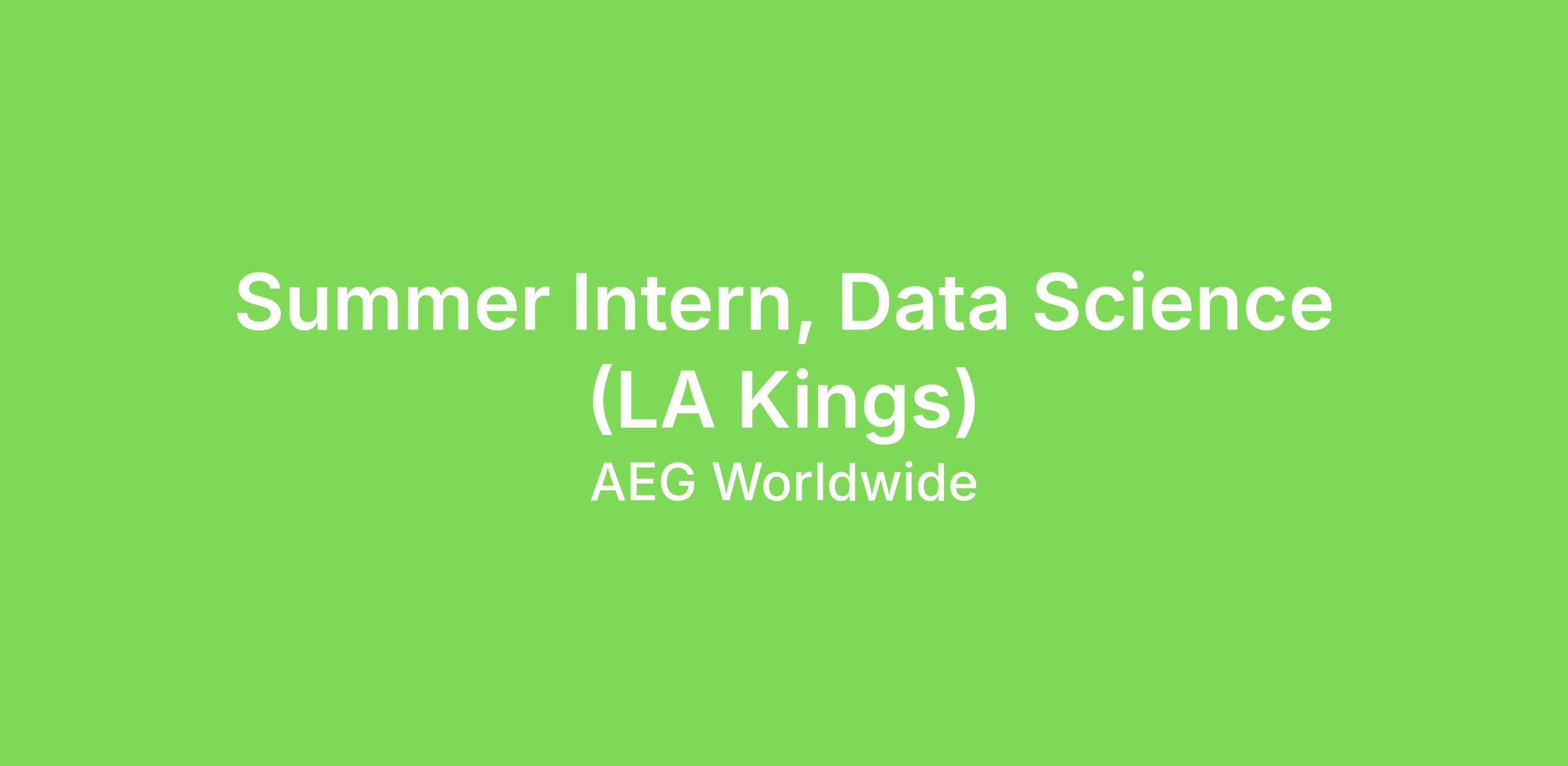 The Data Science intern will work within the Business Intelligence and Analytics department at the Los Angeles Kings Hockey Club and will collaborate with business operations, sales, ticketing, marketing and creative teams to drive strategy, improve revenue, and drive efficiencies by identifying patterns, predicting outcomes, and providing actionable insights for our organization. To do this, they will collect, clean, model, and analyze data using machine learning, data science, data engineering, and statistical analysis techniques.