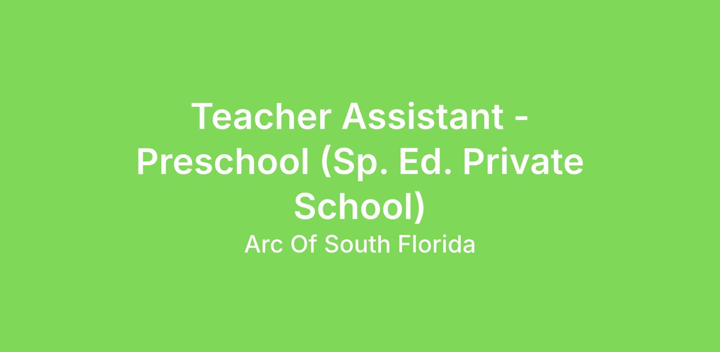 The Teacher Assistant is actively involved in all aspects of the program including but not limited to direct interaction with the children, families and staff of The Arc of South Florida.