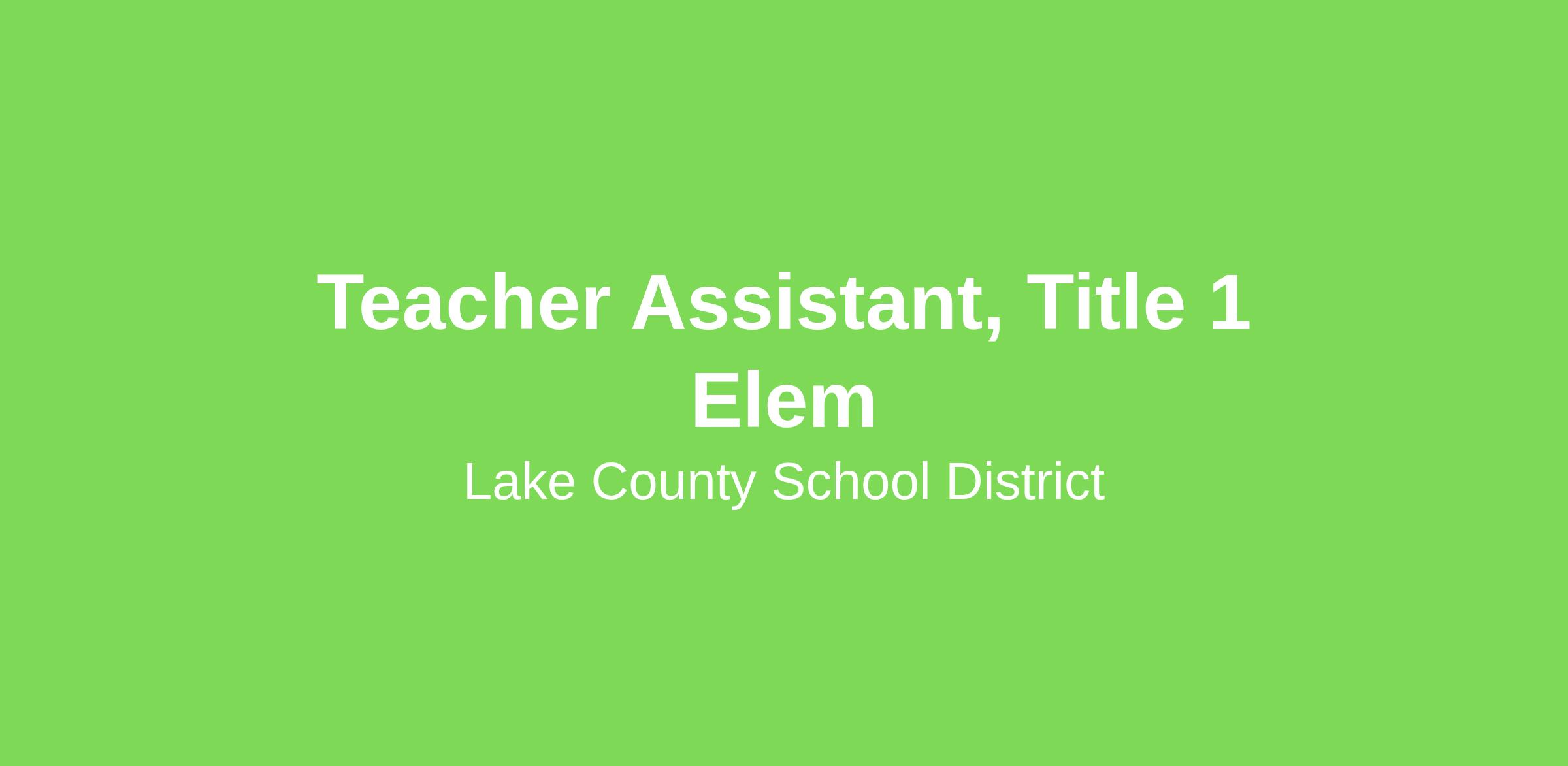 The Lake County School District is an Equal Opportunity Employer. In compliance with the Americans with Disabilities Act, The Lake County School District will provide reasonable accommodations to qualified individuals with disabilities and encourages both prospective and current employees to discuss potential accommodations with the employer.