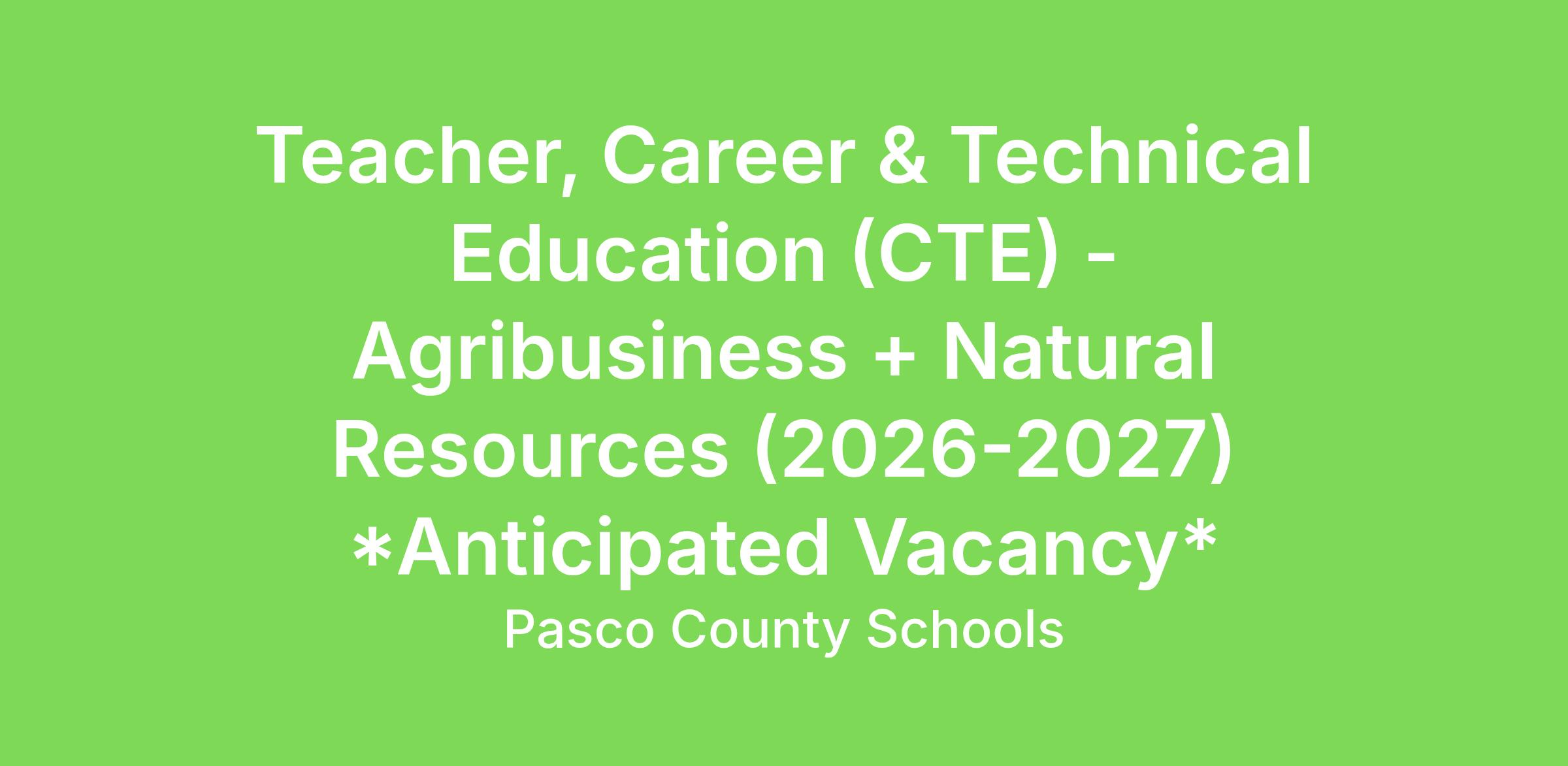 Responsible for developing, planning, organizing, and implementing a Career and Technical Education (CTE) instructional program for students through curriculum, lesson plans, and educational programs, while ensuring that all procedures are followed to maintain safety and security and to meet federal, state, and local regulations.