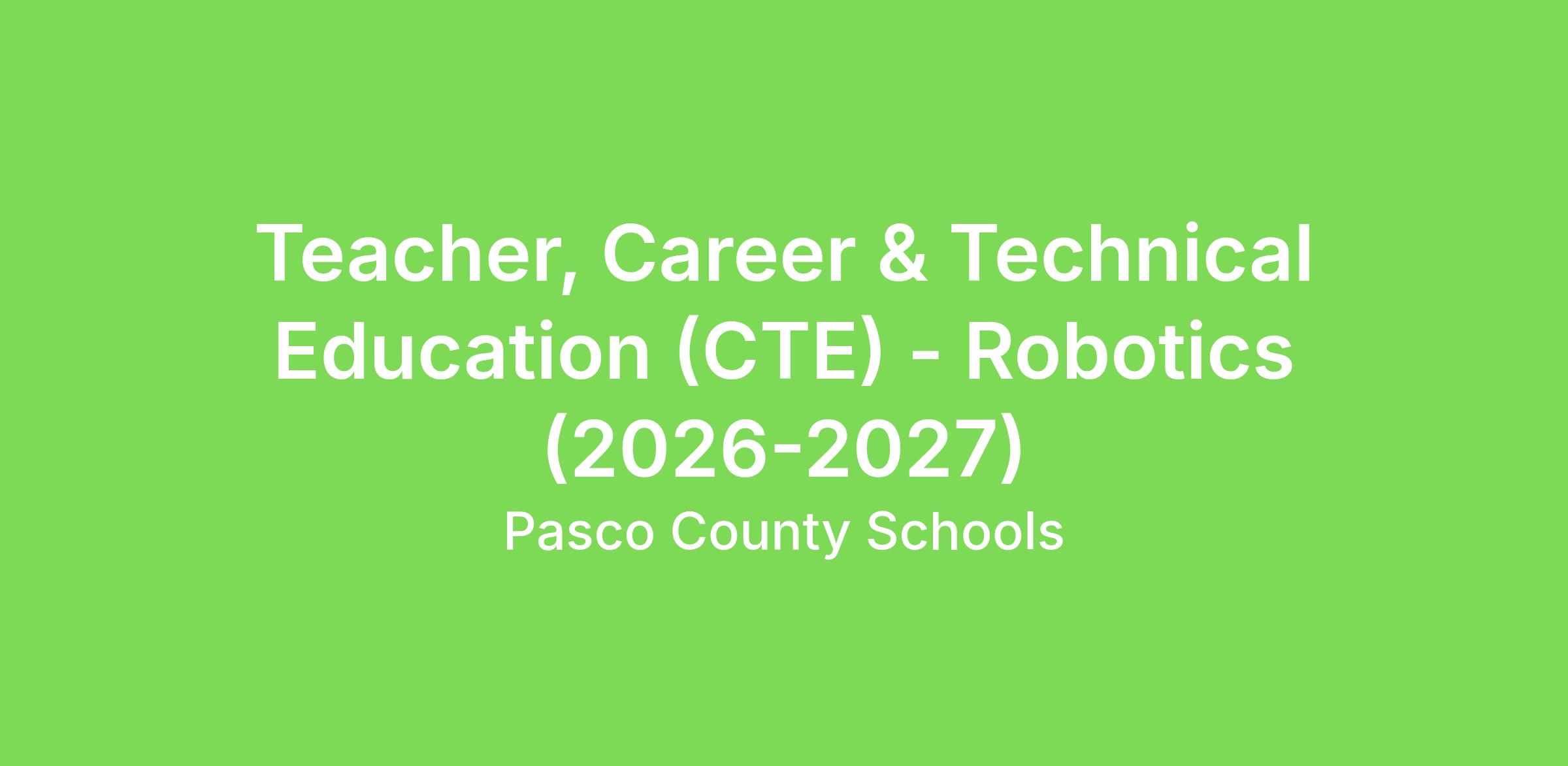 Teacher, Career & Technical Education (CTE) - Robotics (2026-2027)