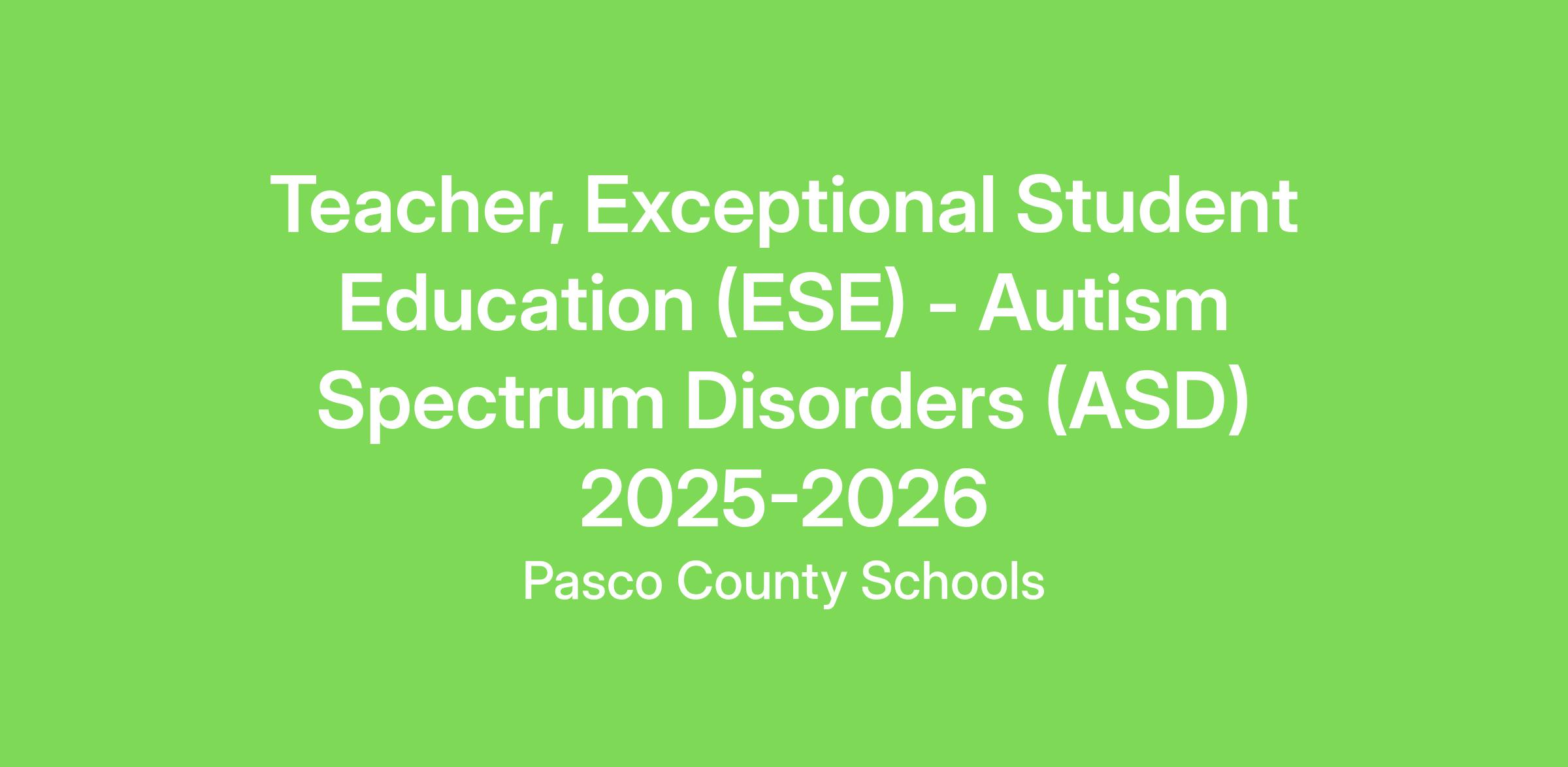 Specialty: Special Education - Autism Spectrum Disorders (ASD)