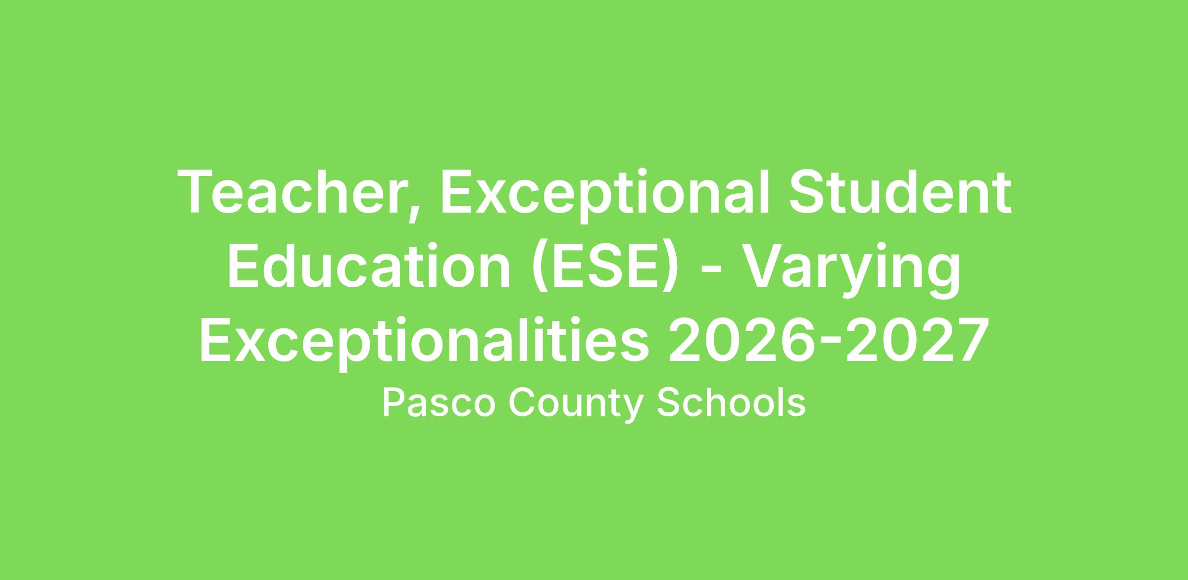 Teacher, Exceptional Student Education (ESE) - Varying Exceptionalities 2026-2027