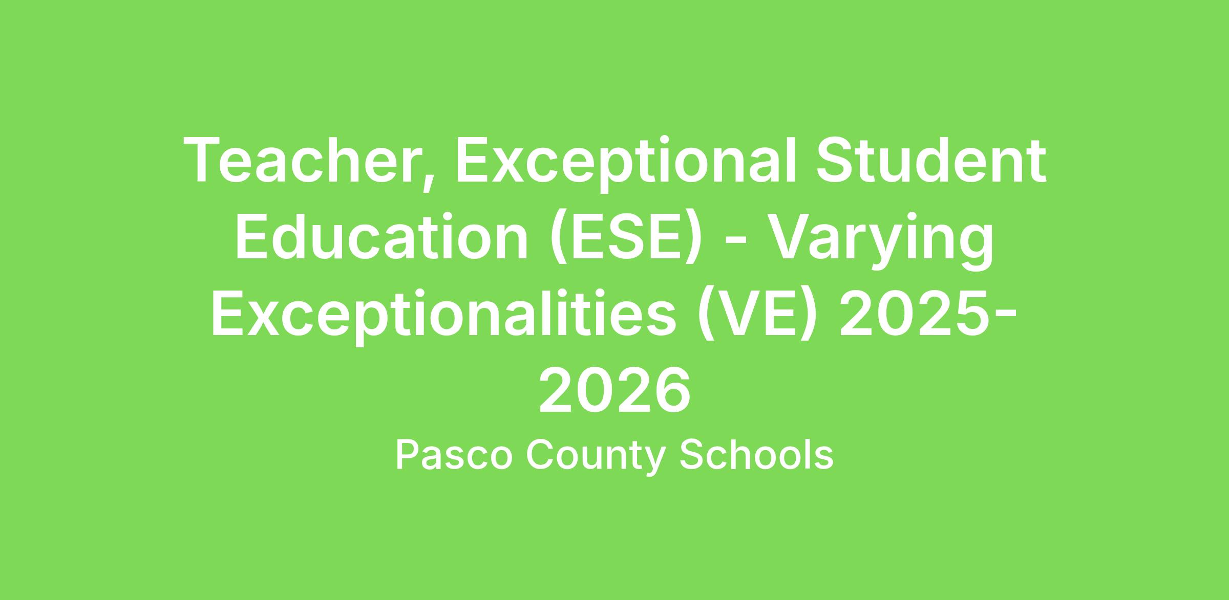 Teacher, Exceptional Student Education (ESE) - Varying Exceptionalities (VE) 2025-2026