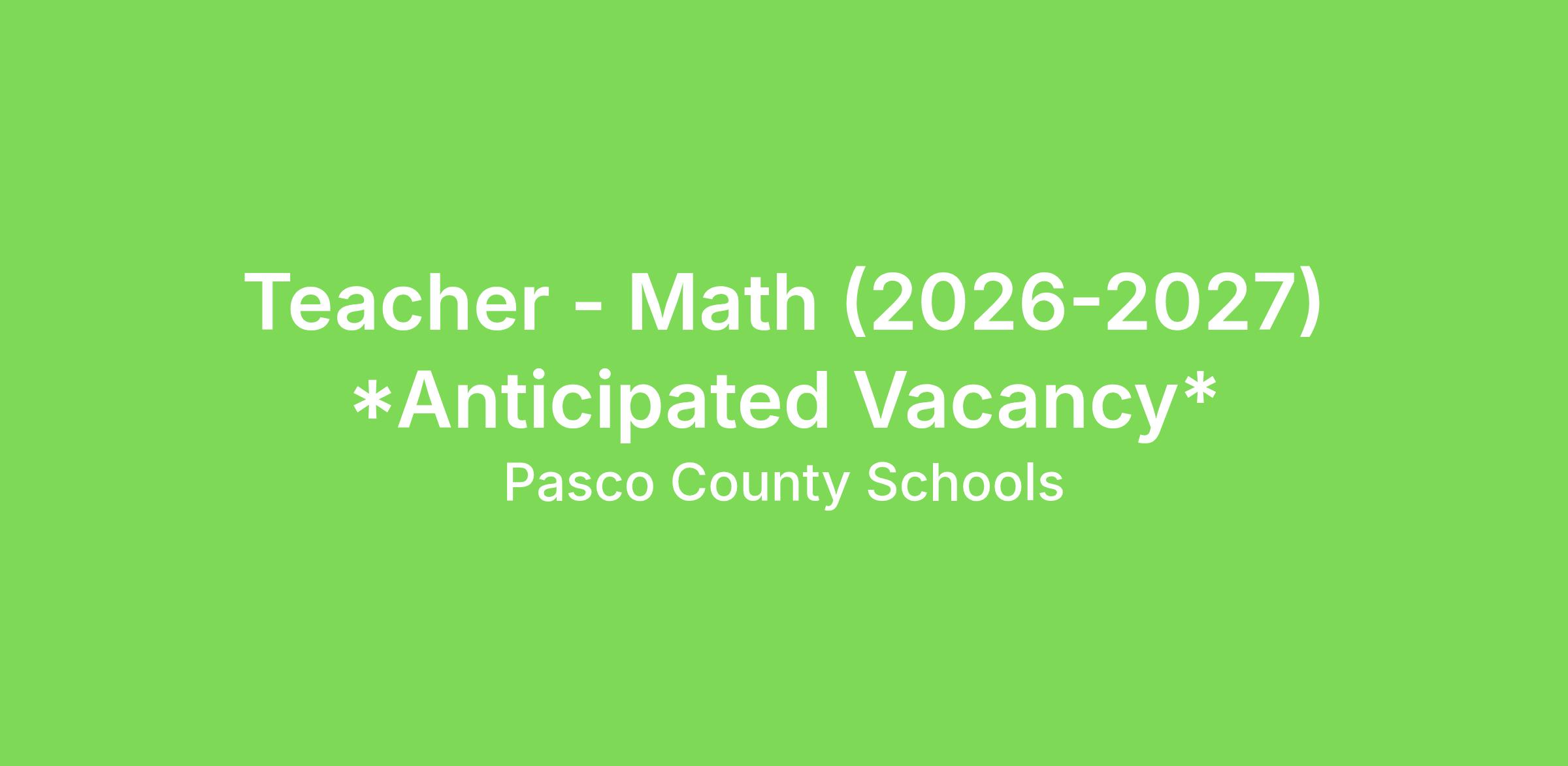 ***This position may require you to teach an additional period beyond your base contract. Should this occur, you will receive additional compensation at the effective negotiated rate in addition to your base salary for instructing this additional period. This additional amount will be paid as a supplement and will be disbursed in equal payments based on the District’s established payroll calendar for this position. This amount is considered part of your salary for Florida Retirement System purposes.***