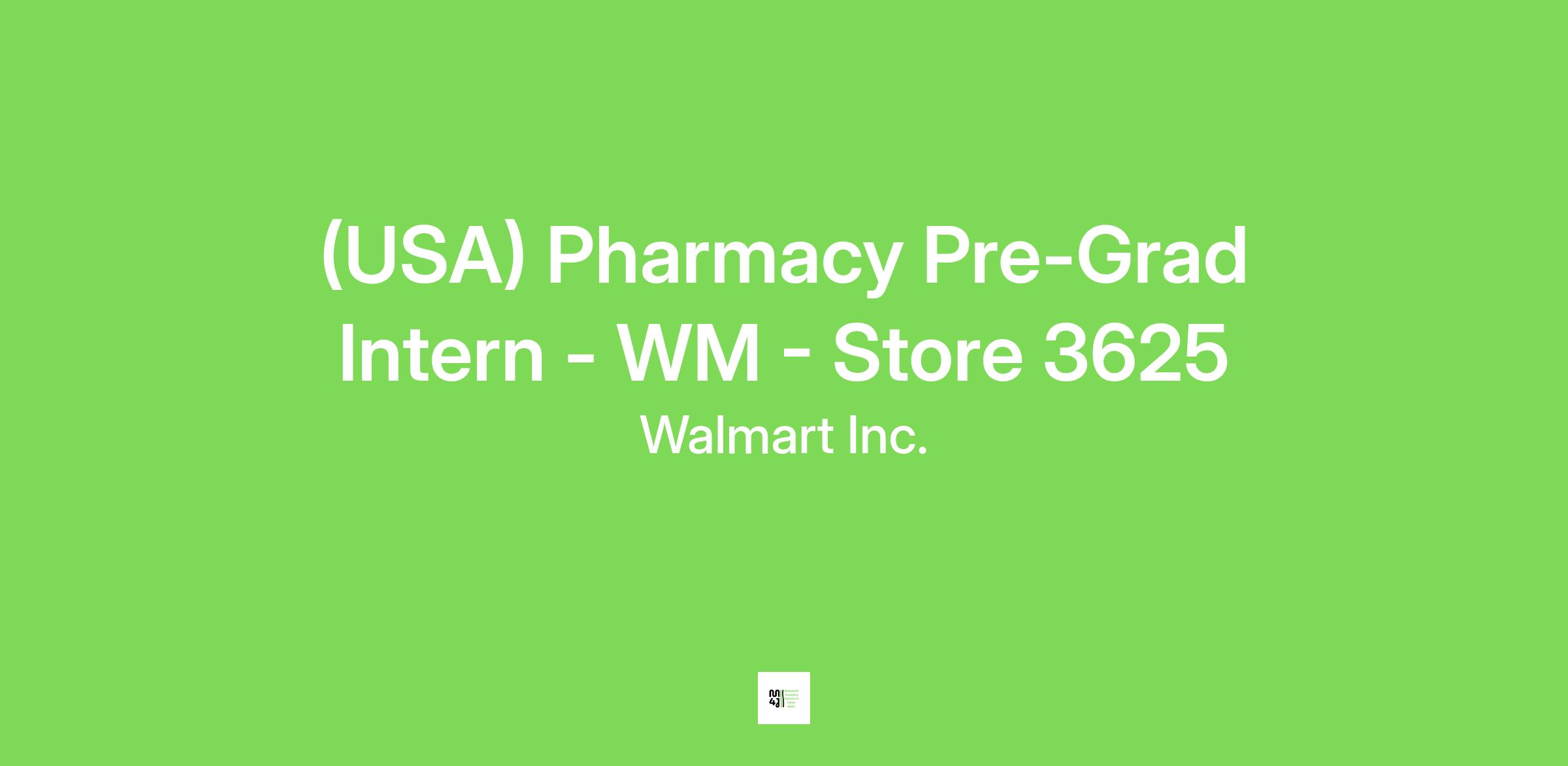 (USA) Pharmacy Pre-Grad Intern - WM - Store 3625