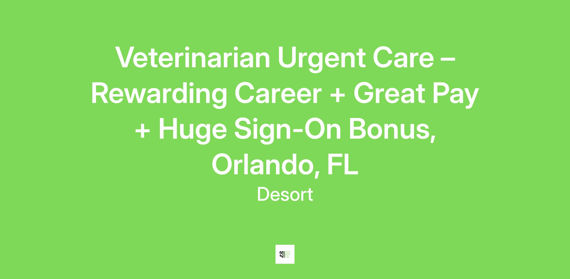 Veterinarian Urgent Care – Rewarding Career + Great Pay + Huge Sign-On Bonus, Orlando, FL