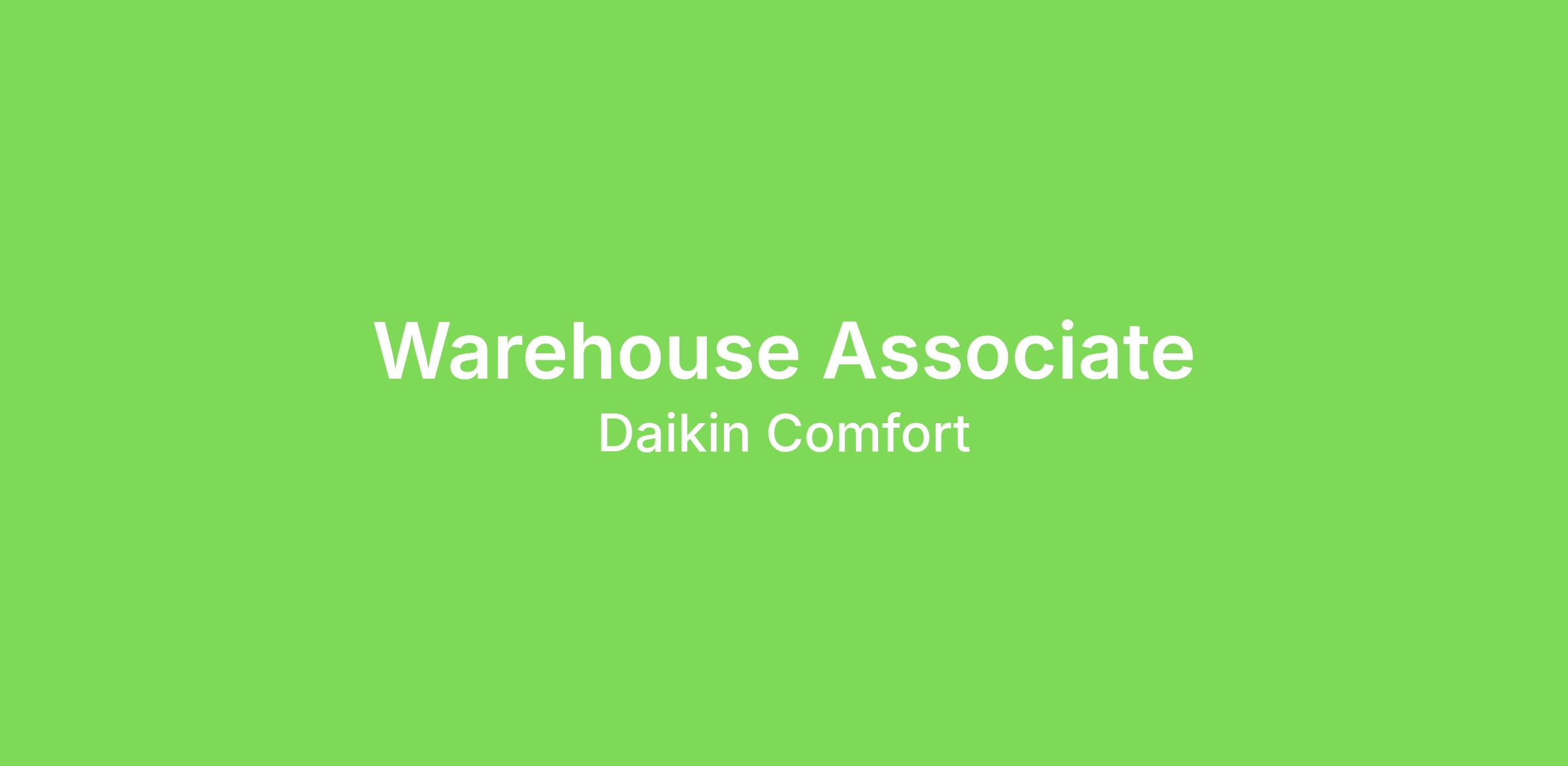 Daikin Comfort Technologies Distribution, Inc., is seeking a professional, skilled individual for our Warehouse Associate position for our Branch Operations group located at our Kissimmee, FL branch. The Warehouse Associate is responsible for off-loading, put-away, picking and staging of equipment and parts while providing professional quality customer service to all internal and external customers. The warehouse associate is accountable for the movement of all materials within the warehouse and overall appearance while ensuring to meet all safety protocols.