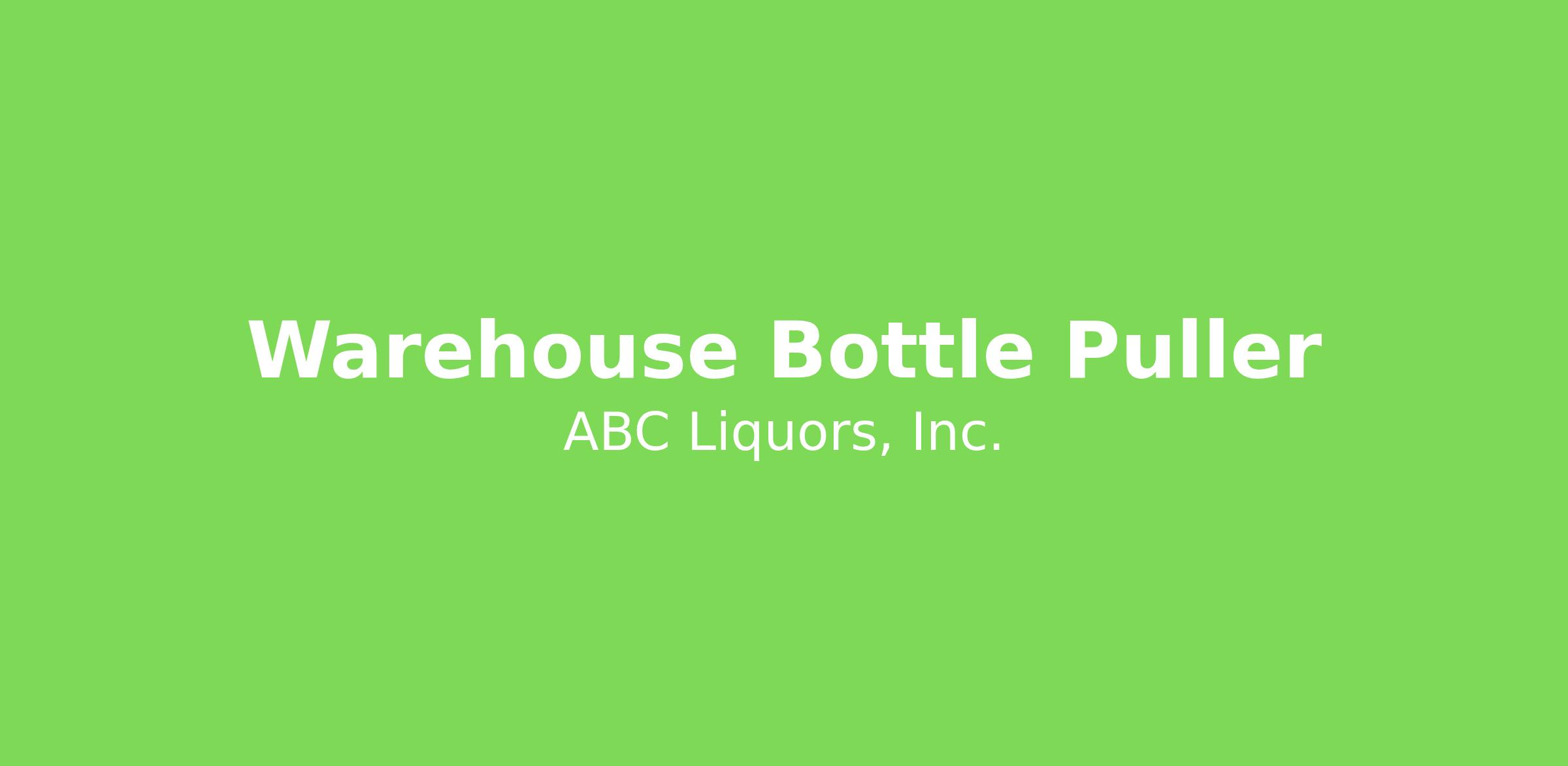 Want a great job in a family-owned business that's been successful for 85 years? Where you are treated like family? You'll get competitive pay, benefit options, and weekends off! Warehouse employees are important members of the ABC team, who make sure that product is ready for shipment to our 125+ stores. Team members work in a physically demanding environment where meeting productivity standards and safety standards are required. The Bottle and Full Case Picker/Packer ensures that items are picked and packed for each store’s deliveries.Responsibilities